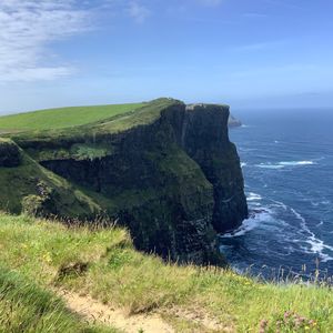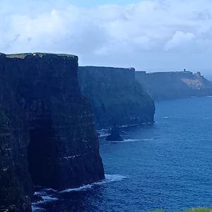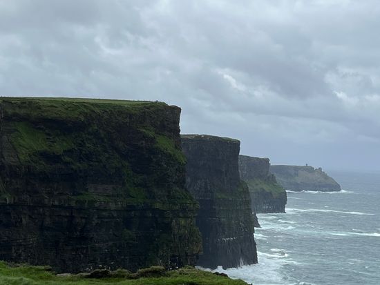 モハーの断崖では雨が降っていて、強風も吹いていて大変でした。傘は役に立たないので、天候は悪そうな場合は、カッパやフードのついた防水のジャケットがあるとよいです。断崖沿いを歩いていくこともできますが、結構長いのと雨の日は水たまりが多く歩くのが大変です。私はバスに乗り遅れないよう途中で引き返しました。曇っていましたが、崖は圧巻でした。