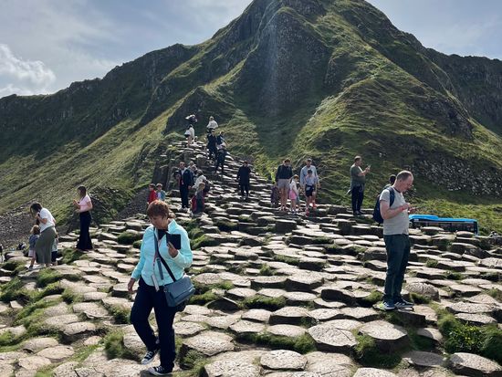 6:20集合のツアーでしたが、バスが遅れており乗れたのは7:00。バスに乗ってからは1日の流れや直近のスケジュールが案内されず少し不安でした。途中1回のトイレ休憩を挟んで、10:30にDARKHEDGESへ。所要時間は30分程度でしたが、一本道を往復するだけなのでちょうど良かったです。写真では伝わりづらいですが実物で見ると迫力が違います!その後1時間半ほどでジャイアンツコーズウェーへ。所要時間1時間半でしたが、入り口から岩場があるところまで20分〜30分程度歩きます。歩く区間を有料バスが往復していたので歩きに不安がある方はそちらを利用するといいと思います。また、雨が降っていたら岩の上は確実に滑るなという感じでした。