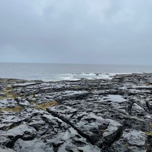 朝から雨が降っており、とても寒いスタートでした。銅像集合ですが他のツアー客もおり、バスの運転手兼ガイドさんが呼びに来るのを待ちます。車内は自由席。とても天気が悪いから覚悟してと言われました。確かに、風と雨が強く台風並みでした。ただ移動している間に天気が回復し、着く頃には晴れ間が見れました!モハーに着くと、レストランやショップなどの施設もあります。雨は上がったものの注意報が出るほど風が強く飛ばされそうになるほどでした。写真は1時間で天気が変わった様子です。モハーの後は少しバスで移動し、全員で1軒のお店で昼食をとりました。その後、ゴールウェイまで休憩なしで行きました。ゴールウェイまでの道のりがとても綺麗な景色でしたし、街並みもパブが多く魅力的でした。バスの運転手の方のアナウンスも分かりやすく、楽しくツアーに参加することができました!