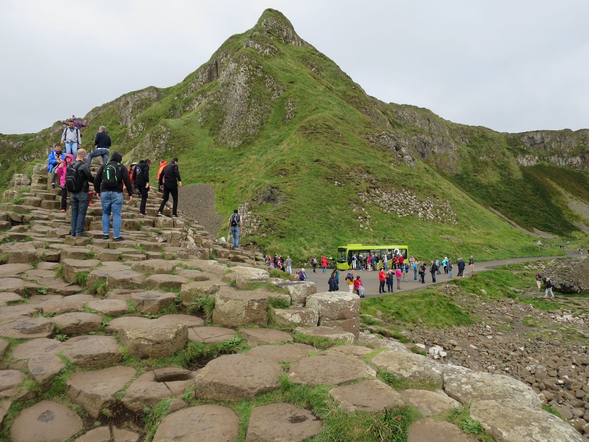 英国出張の帰りにアイルランドのダブリンに2泊3日で寄りました。今回2回目で、前回は市内を中心に観光しましたが、是非ともジャイアンツ・コーズウェーに行きたいとツアーに参加しました。一人旅でも気軽に参加できるツアーで、朝早くの集合ですが、アイルランドの地方の方や各国旅行客(特にペアが多かったです)で大型バスはほぼ満員です。日本人はただ一人!ですが、最後にペアの方に席を譲って一人で来ていた御嬢さんと同席となりました。快適な広いバス内で、期待を膨らませた世界遺産を楽しみに、長旅も快適に過ごせました。バスを降りてから雄大な北の海を見ながらの15分ぐらいの歩きで、最北端に位置するコーズウェーにいよいよ到着!想像を超えた雄大な光景は、マグマ隆起によって自然にできた岩の集合体です。面積も大変大きく隆起も様々な形をしており、その上に乗っての光景は絶品でした。はるばる来たかいがある感慨深い場所でした。その他にもう少し先に行くと、岩と岩をつないだ長い吊り橋があり、これも印象深かったですね。日本には見られないアイルランド独特の自然が醸し出した風景には、感動しかありませんでした。
