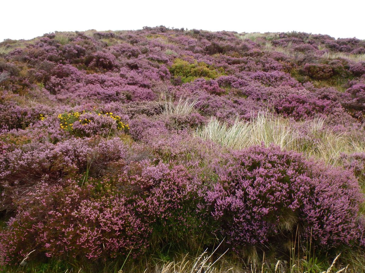 最初のトイレ休憩の時は雨も降り、ガイド内容にもヒースの花の案内もないので、かなり不安でしたが、その後のコースでは山肌にヒースの花を見ることができました。