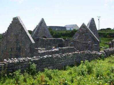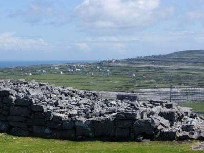 島では島育ちのガイドが運転するベンツのバンが待っていた。なまりの強いガイドの英語(仲間と話すアイルランド語から判断)にはもちろんついて行けなかったが、ガイドマップで概要は分かる−というか、見たところ何もない島なので、特に説明の必要がない。目の前に広がるのは荒漠たる荒野と、島を覆いつくすチェック模様の石垣と、その中の茅葺民家と、期待に目を輝かす観光客と、観光馬車とレンタル自転車と、それから大西