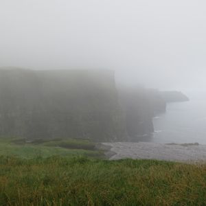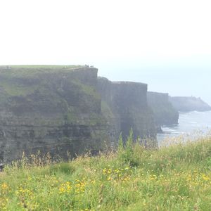 モハーの断崖につくころには雨も止みましたが、霧が出ていて断崖がはっきり見えなくてがっかりしていました。しかし暫く散策すると天気が回復し、霧も段々と消え、青空が見えてきました。晴天とまではならなかったですが、天候とともに様々に変化する断崖を見ることができて良かったです。