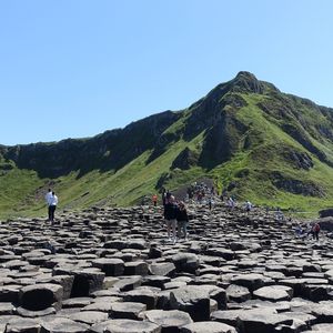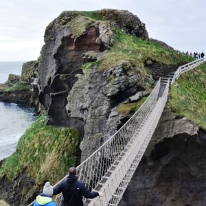 2名で参加しました。日本人は私たちだけでした。朝早くダブリンを出発してキャリック・ア・リードの吊り橋に到着。駐車場から徒歩20分くらいで吊橋に着きましたが風が強かったせいもあり橋の前後で渋滞。予定の一時間でバスに戻れず焦りました。吊り橋はスリル満点でした。昼食の時間が迫っていたので30分遅れくらいで出発しましたが戻ってこない何人かはおいていかれました。(次のジャイアンツ・コーズウエイまで別の車で送ってもらったようです)ジャイアンツ・コーズウエイでは一時間半の観光時間でしたがこちらは問題なく徒歩で往復。なかなか興味深い景色でした。帰り道ベルファストに寄りましたが一部の人たちはタクシーでタイタニック号建造ドック見物に行ったようです。我々は市内散策・買い物をしました。ダブリンには7時ごろ到着。