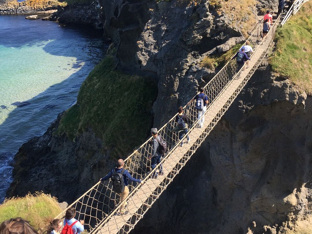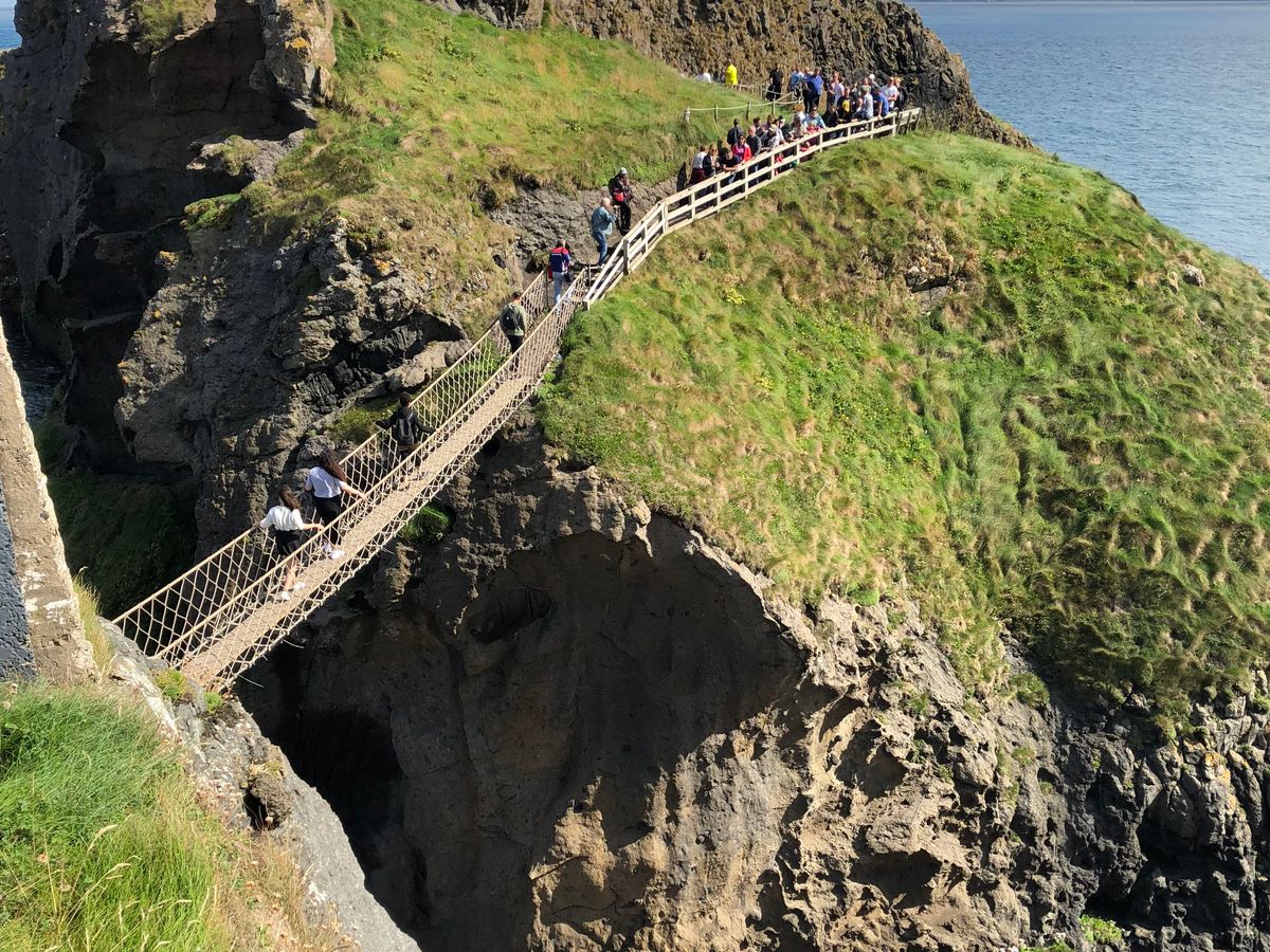 ジャイアンツコーズウェイは滑りやすいので、スニーカーが一番だと思います。吊り橋は結構遠く、行きも帰りも渡りますが待ち時間が生じます。集合時刻を考えて往復するといいです。