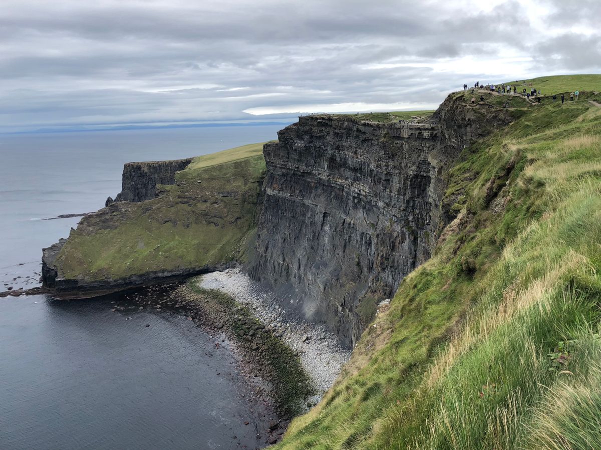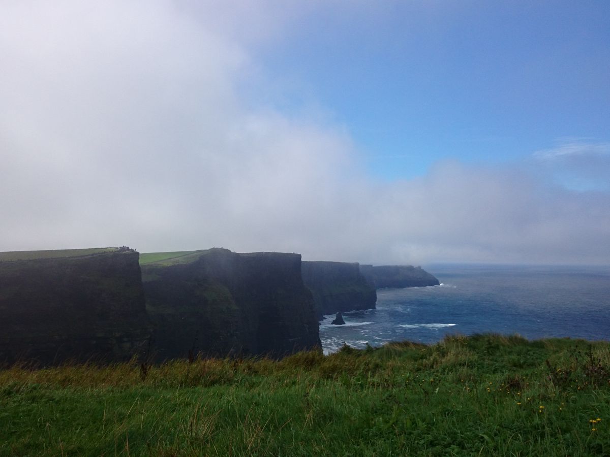 参加した日はとてもいい天気だったのですが、モハーに着いたとたん雨が降り出してバスに戻るころにはヒョウが降ってびしょ濡れになってしまいました。。かなり天気がかわりやすい場所のようです。ですが断崖は絶景でした!道中バスから見れる海の景色も最高にキレイで、ダブリンだけでは味わえないアイルランドの大自然を満喫できたので参加してよかったと思います。