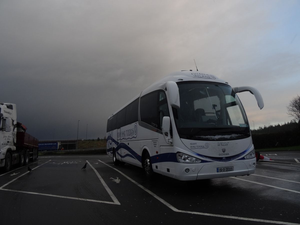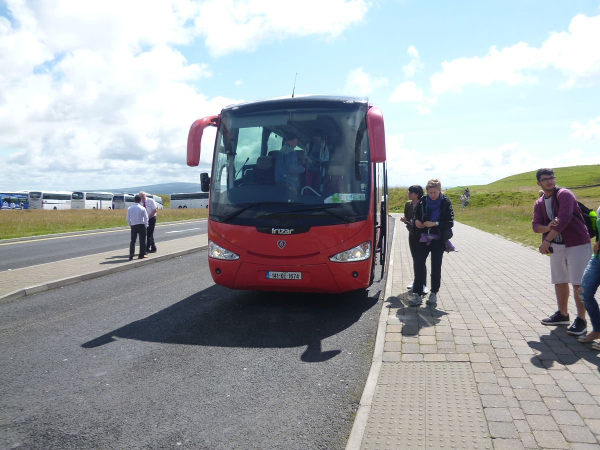 大型バスでの30人弱のツアーでした。モリーン像の集合場所から歩いて大通りに移動してバスに乗車。座席は乗車順なので早く前の方に行った方が良いかも。私とあと2人くらいが集合時間を確認していたので、以後は紙に書いた集合時間を見せるようになりました。モハーまでに1か所SAでトイレ休憩15分がありますので、サンドイッチを買って車内で朝食。モハーの断崖とゴールウェイの街でまとまった観光時間が取れます。昼食は他の観光バスも居たので大混雑しますので、さっさとお店に入って注文しましょう。運転手兼ガイドのデービットさん、ありがとうございました。