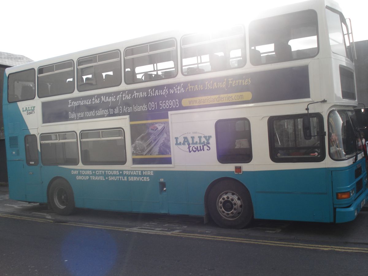 ツアーと言っても、ゴールウェイ市内からフェリー乗り場までの往復のバスと、アラン諸島のうちで一番大きなイニシュモア島へのフェリー往復のチケットのプランです。注意しなければいけないのは、あらかじめバウチャーを現地オフィスでチケットに引き換えておかなければいけないことです。オフィスの開いている時間に注意しなければなりません。またオフィスでは一人の係りの人が手書きでチケットを書いてくれますが、けっこう時間がかかります。その時バス乗り場の位置も教えてくれます。バスが混むという情報を読んでいたので翌朝早めにB&Bを出てバス乗り場に行くとすぐに満席になり出発でした。