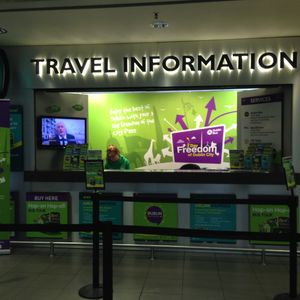 ターミナル1のDublin Busのオフィス(到着ロビーに出て、左側のバーの手前)でバウチャーと交換しました。ターミナル1と2は隣り合っていて、徒歩5分以内ですので、ターミナル2利用でも全く問題ありません。
