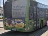 このバスデザインぽいAlibusと書かれた緑のパネルに沿って歩いていくとバス停があります。