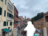 ガイドさんの説明が簡潔でわかりやすかったです。ヴェネティア総督の紋章の由来や、ティントレットの巨大な油絵に関する物語や、水牢に閉じ込められた囚人の悲哀は、やはりガイドさんの説明がなければ見過ごしていたと思います。おりしも満潮になり、大理石の舗道から潮水が噴き上がっている様子を見て、初めてガイドさんの季節外れのブーツ姿に得心がいきました。ゴンドラに乗って30分ほどの遊覧を楽しみました。地上の喧騒を離れてひととき安らぐことができました。ドゥッカーレ宮殿では長年憧れていた、謎めいた二人の娼婦の絵に出会えて、大満足の一日でした。