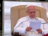 そして、いよいよ10時。ローマ法王が現れ、講話が始まります。ご本人アメリカ人ですが、イタリア語でスピーチされ、その後、フランス語、英語、ドイツ語、スペイン語、中国語の順に通訳の方が話します。各国から集まった信者は、自国語でスピーチされると大いに盛り上がりました。因みに、日本語はありません。