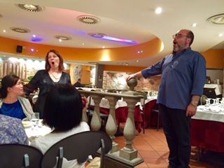 オペラ歌手はテーブルの前で名曲を披露して下さる。