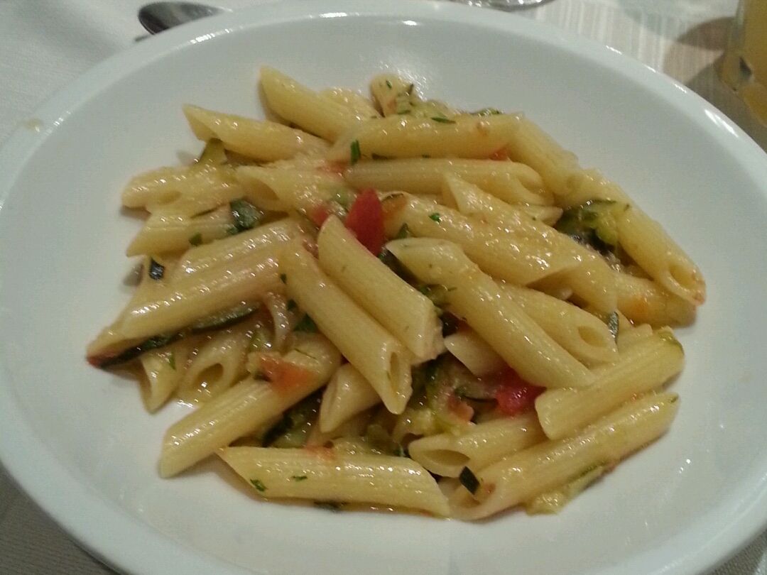 プリモは、2種類から選べるパスタで、この日はトマトのペンネもしくはジェノベーゼのファルファッレ。