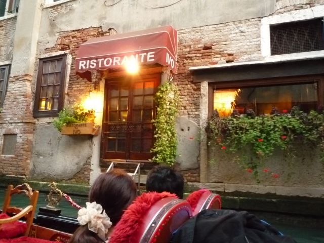 とても素敵な一瞬でした。でもこれが今夜の素敵のはじまり。夕日のなかのゴンドラは本当にロマンチック。いつまでも漂っていたい気分でした。ディナーも大変おいしくいただきました。ワインの追加もOKでしたよ。