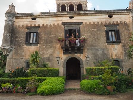 初めてのシチリア旅行のメインとしてゴッドファーザーのロケ地を巡るツアーに参加しました。最初に海岸沿いの駅へ。そして、邸宅として使われたスキアーヴィ城へ。現当主のフランコさんに城内を案内してもらいました。写真もたくさん撮ってもらい温かいもてなしに感激!撮影時の写真なども見せてもらい興味深かったです。