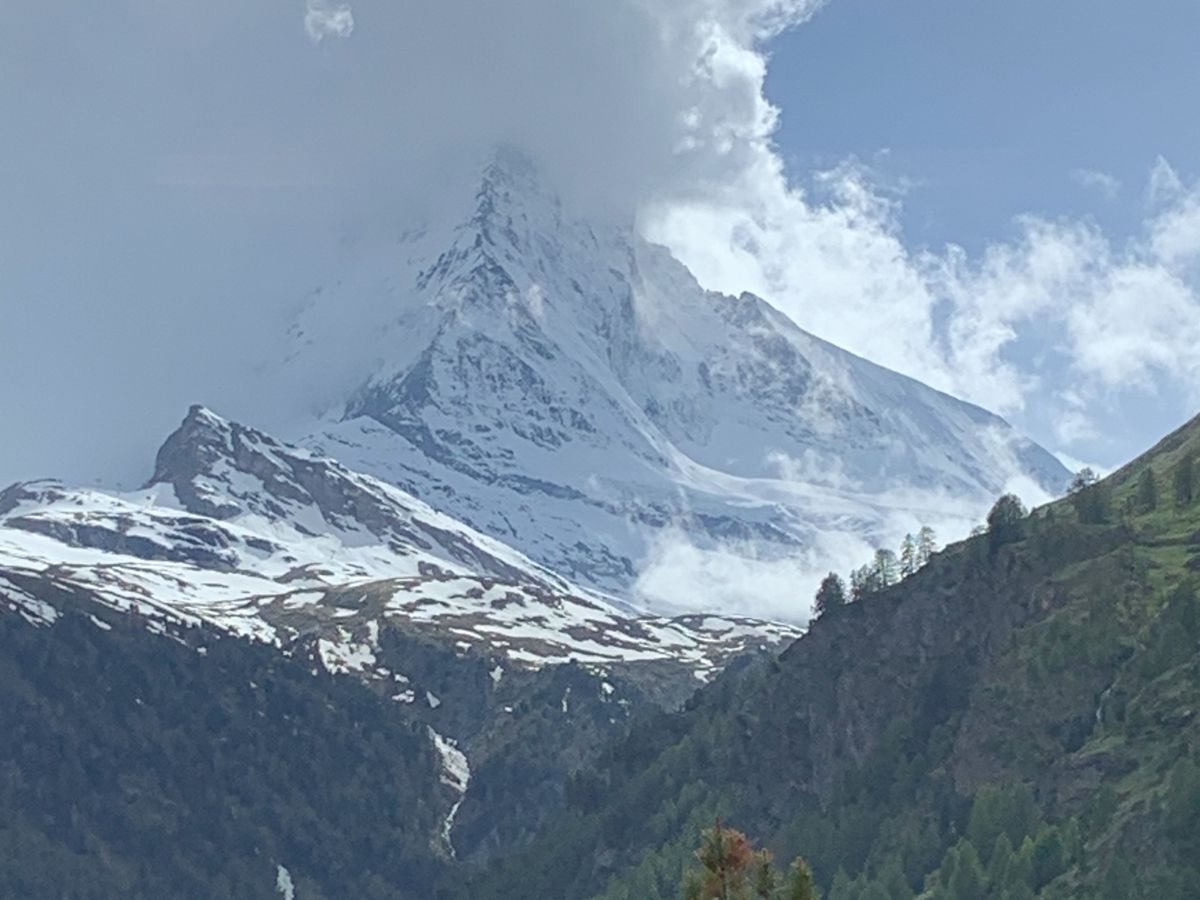 残念ながらゴルナーグラート山頂でマッターホルンは望めませんでしたが、下山途中の車窓から何とか見えました。