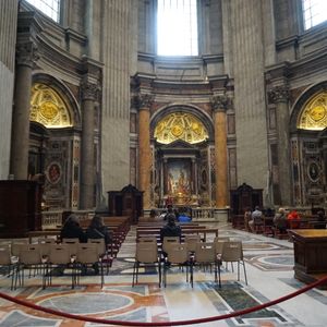 集合時間は早かったですが並ばず入場出来て時間短縮になりました。ガイドさんの説明でたくさんある展示品の特徴や見どころなど、見逃す事無く見学出来ました。美術館のあとはサン・ピエトロ大聖堂へセキュリティチェック無しで入れる入り口を教えてもらい登って来ました。プラス10ユーロ払ってエレベーターに乗りましたが降りてから更に狭い階段を300段以上登り五十路を超えた私には辛かったです。しかし展望台からの眺めは素晴らしいので、足に問題無い方にはおススメします。