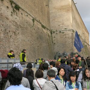 ゴールインウィークで日本人客が多いため一人のガイドさんに20人を越える参加者が2列で長くなっているのでワイヤレスでの説明の声もなかなか届かず、他の団体と入り乱れるなかガイドに近づくことに苦労しました。