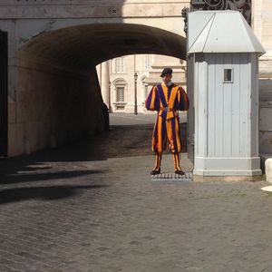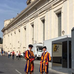 「最後の審判」は圧巻で、実際にみたら人生が変わることでしょう。こちらのツアーを利用すると、チケットを買うために長蛇の列に並ばずにすみます。美術館をゆっくり見たい方は、当日券を買って入るのがおすすめですが、限られた時間で、どうしても見たい方にはこのツアーはおすすめですよ。写真は、バチカンを守るスイス兵たちです。