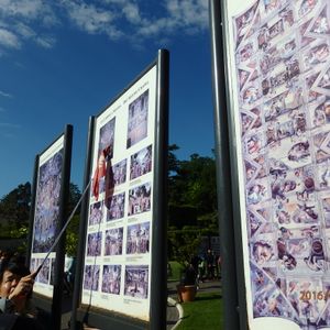 ガイドさんの旗についてどんどん歩き、システィーナ礼拝堂の説明パネルがいくつかある庭まで移動です。 パネル合戦の話はバスの中で聞いていましたが何のことか??~行ってみて成程!と思いました。既にパネルは一杯で、他のグループが終わるのを待ち、それからパネル見ながら詳しい説明を受けました。システィーナ礼拝堂では沈黙なので事前にガイドする訳です。