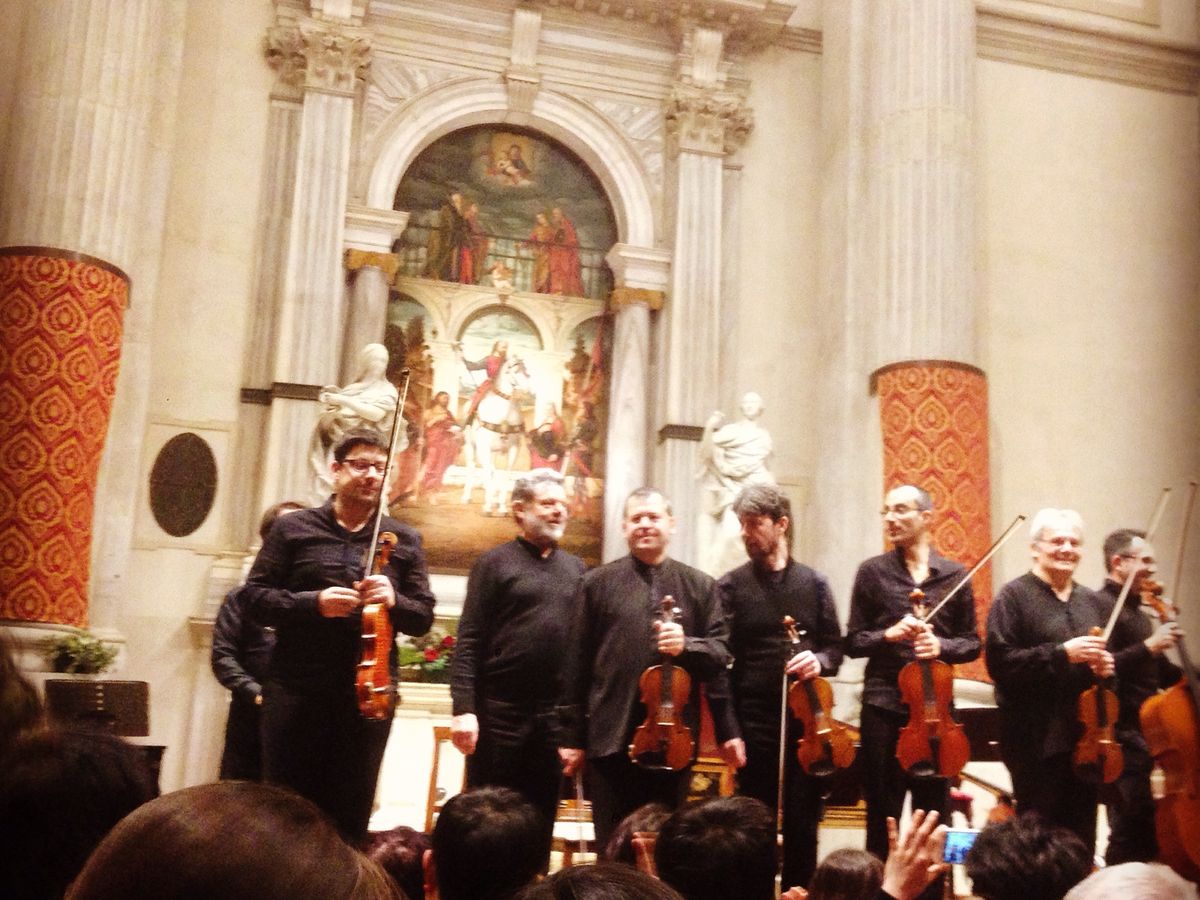 合奏団の技術的レベルの高さもさることながら、教会の音響が本当に素晴らしく、弦楽器の音が柔らかく美しく響きます。曲が終わるたびに客席からうっとりしたため息が漏れ、最後は納得のスタンディングオベーションでした。是非もう一度聴きたい!
