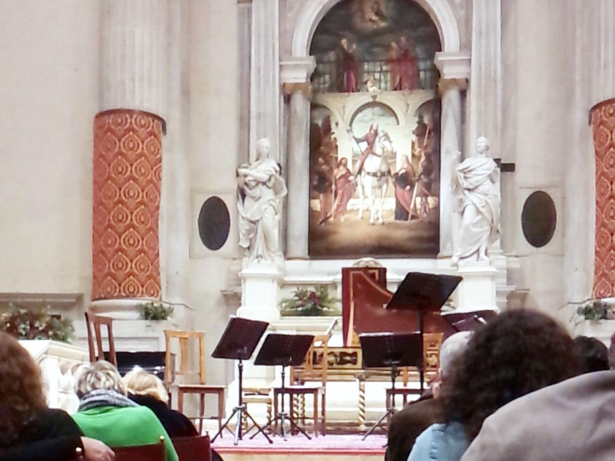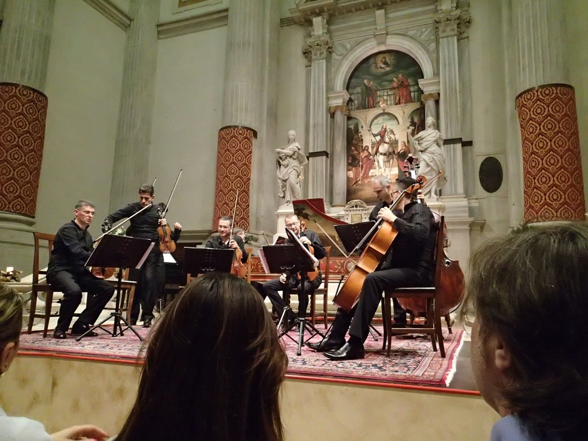 憧れの教会でのコンサートを初めて体験し、地元出身の作曲家による地元、ヴィネツィア室内合奏団の演奏は物まねの演奏でなく、演奏家の身体にしみ込んだ演奏で音響効果も良く、大変に