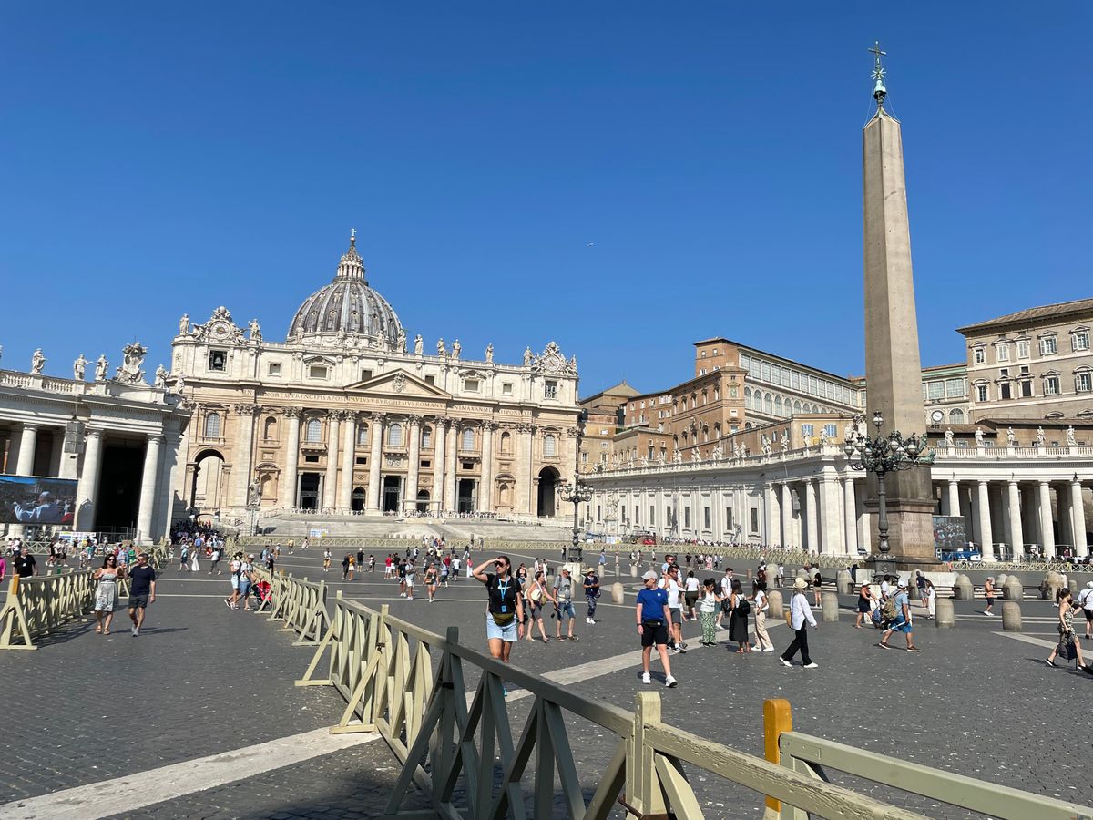 当日の朝、ホテルに迎えに来て頂いたのですが、当初プライベートツアーの意味合いを小グループによるものと間違えて理解していて、私と妻の二人のみを面倒見て頂くとガイドして頂いたサクライ様からお聞きし驚いたところから話は始まります。その後地下鉄でバチカンに向かったのですが、その途中にローマの地下鉄事情も説明して頂いたりしている間に到着。手配頂いていたので、全く待つことなく美術館に入場。数十年前に私が来館した際に使ったであろう螺旋階段を見せて頂いたり、プライベートツアーという事で、こちらからの質問に丁寧に答えて頂き、理解を深める事が出来ました。やはり遣り取りが出来るのが良いですね。久しぶりのシスティーナ礼拝堂には実に感動しました。その後、こちらも手配頂いていた様で、サンピエトロ大聖堂にも美術館からシームレスに入場する事も出来ました。広場には1~2時間の手荷物検査待ちの列が出来ていましたので、これも助かりました。大聖堂内でも適宜歴史含めてご説明頂き、こちらでも更に理解を深める事が出来ました。各所で、家内と一緒の写真も撮って頂き、助かりました。サクライ様には感謝ですね。