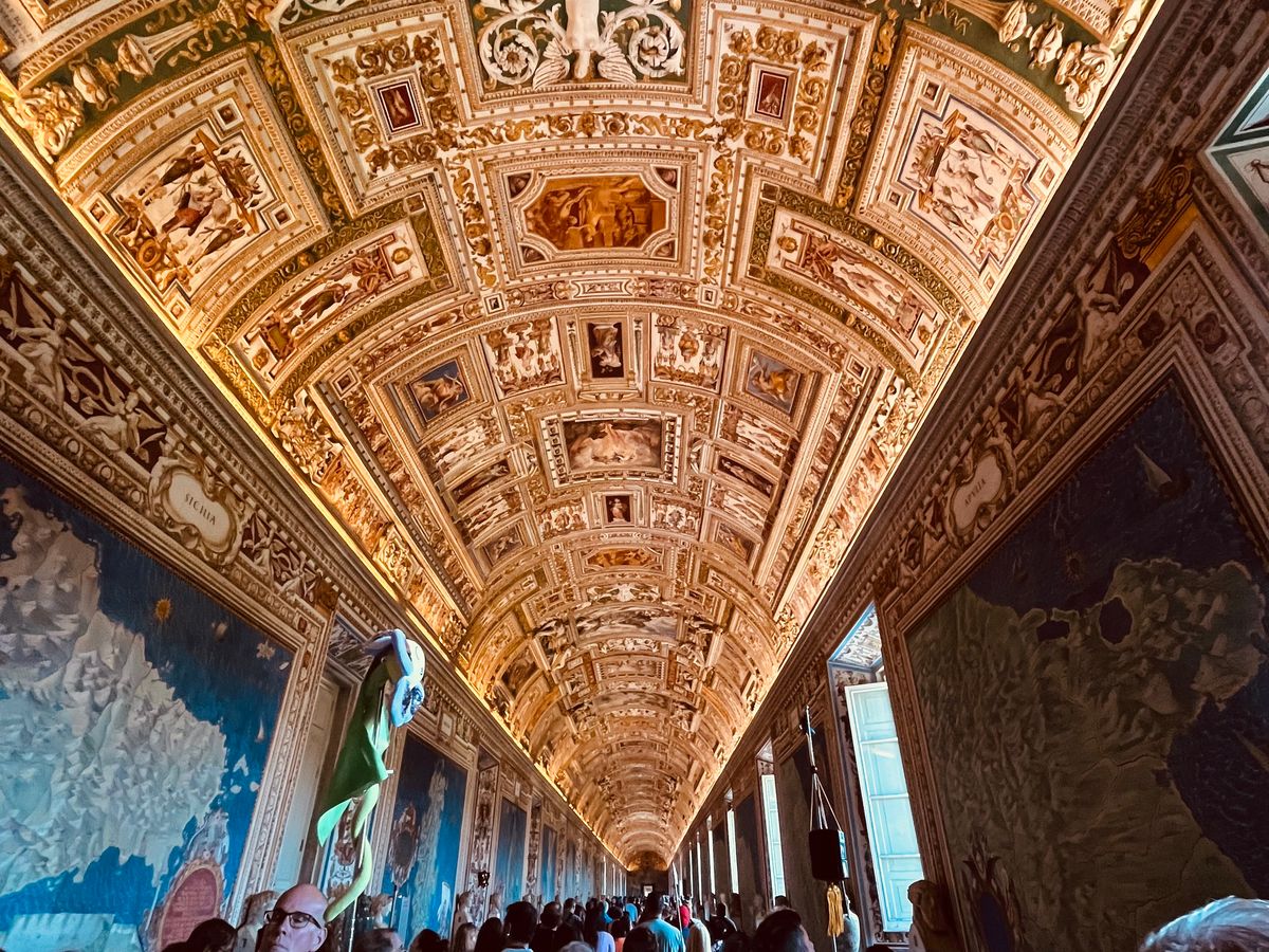 当日は交通機関のストライキが発生し、かなりドキドキしましたが、入ってみればポイントを押さえたガイドで効率的に回れました。メインであるシスティーナ礼拝堂天井画は、肉眼で見てもイキイキと描かれていて写真では感じられない迫力がありました。写真撮影はできなかったので、目に焼き付けてきました。