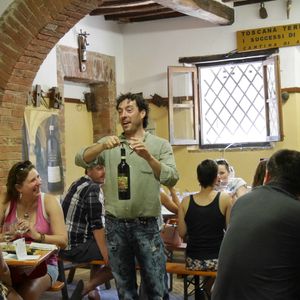ワイン好きの夫がどうしてもモンテプルチアーノに行きたいというので、せっかくならばモンタルチーノにも行けるこのツアーを選びました。当日は8:15にサンタマリアノベッラ駅の薬局前に集合し、片道2時間ほどバスに乗り、モンタルチーノ、モンタルチーノの近くのワイナリー、ピエンツァ、モンテプルチアーノ(ワイナリー含む)を巡りました。モンタルチーノ、ピエンツァ、モンテプルチアーノでは、それぞれ自由時間が1時間ほどありましたが、いずれも小さい町なので1時間で十分でした。またこの地域はオリーブオイルも有名らしく、ワインショップのほかにも多くのオリーブオイル屋があり、ピエンツァもペコリーノチーズの特産地ということで多くのチーズ屋があり楽しかったです。いずれの町からも、まさにトスカーナ!という風景が見渡せましたが、当日は雲が多く、時々雨が降ったのが残念でした。モンタルチーノのワイナリーでは、陽気なオーナーのおじいちゃんが、ワイナリーの中を簡単に説明してくれ、何グループかにわかれてテーブルに座り、ワイン、チーズ、クラッカー、パン、ハムを堪能しました。ワインはArdengo、Rosso di Montalcino D.O.C、Burunello di Montalcino D.O.C.G.,Brunello di Montalcino Reserva D.O.C.G.を試飲しました。一緒に座っていたアメリカ人やオーストラリア人も驚くほどたっぷりの量がグラスに注がれるので、ここでかなりいい気分になってしまいました。(朝食は絶対に食べておくことをおすすめします)モンテプルチアーノのワイナリーでも2杯ほどの試飲とパンがありました。今回は英語のガイドツアーでしたが、最低限バスの集合時刻が聞き取れるぐらいであれば大丈夫です。ただしいずれのワイナリーでも集団でテーブルに座るので英語ができたほうが周りの会話に入れるので楽しめると思います。個人で行くのはなかなか難しいのでかなり効率的にまわれて良かったです!