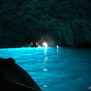 バスで約3時間でナポリまで、ポンペイをゆっくり見学した後自分たちだけソレントのホテルへ。ホテルでの夕食が意外にも美味しかった。翌朝起きると土砂降りの雨。絶望的な気持ちでしたが、意外にも現地のツアーガイドさんは大丈夫かもと嬉しい言葉。半信半疑で船でカプリ島へ。奇跡は起こりました。雨は止み曇りでしたが、小舟で洞窟内へ。言葉には表せない素晴らしい体験でした。日帰りのツアーもあるみたいですが、一泊二日のこのツアーはゆっくりできかなりお勧めです。