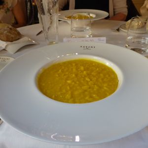 ミラノに訪れる曜日的にディナープランはなく、アペリティーボプランのみでしたが、申し込みました。Saviniはヴィットーリオ・エマヌエーレ2世のガッレリア(アーケード)内にあります。以前、ミラノに訪れた際に外観だけ見ていて印象的だったので、こちらに決めました。またお店のホームページではイタリア語のみしか表示されなかったので、自分での予約が困難だと感じ、こちらのツアーを申し込みました。ミラノ観光で1日歩き疲れた後に、お店探し、メニュー選びが疲れそうだったので、また、ミラノ風リゾットが食べられる為、選びました。家族4人で行き、皆疲れていたので、申し込んでおいて良かったです。アペリティーボプランですが、リゾットの量はとても多く、残してしまうほどでした。