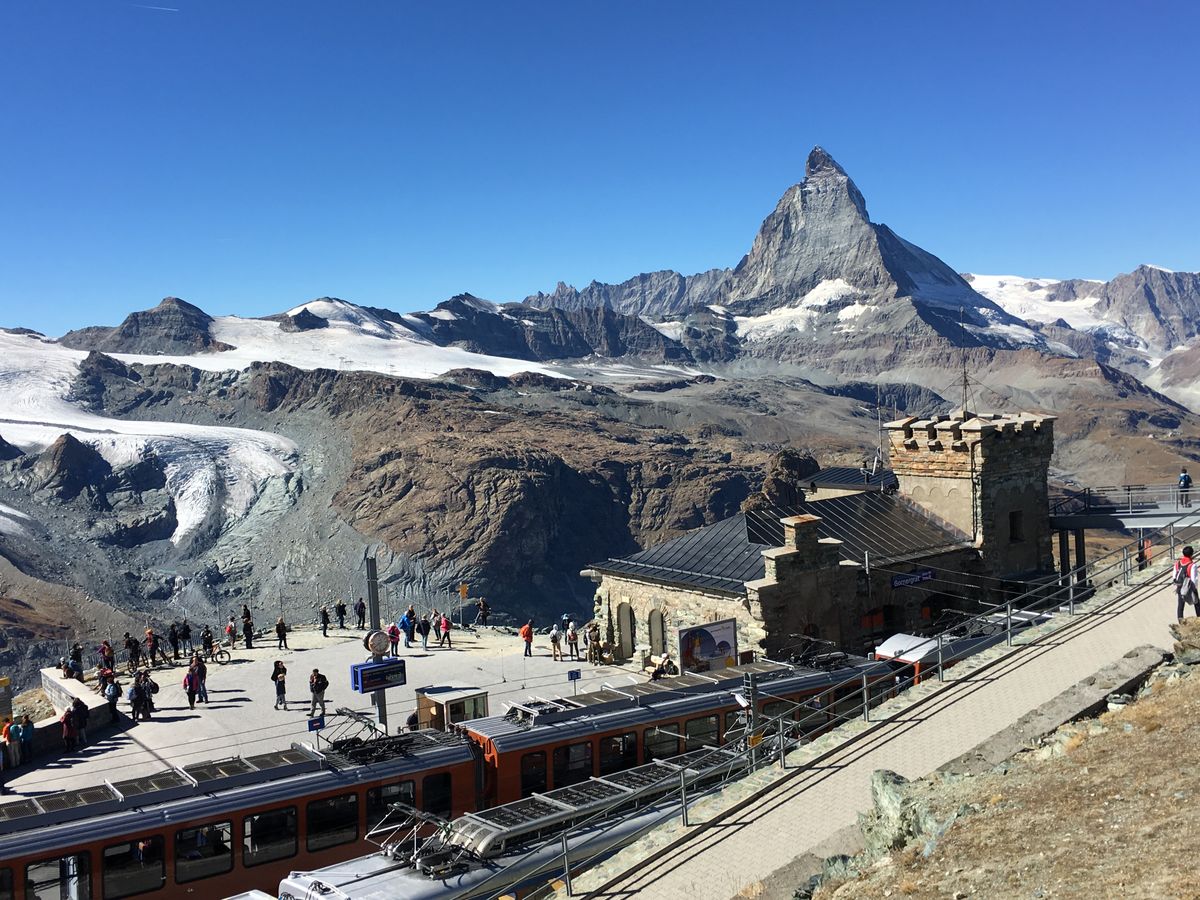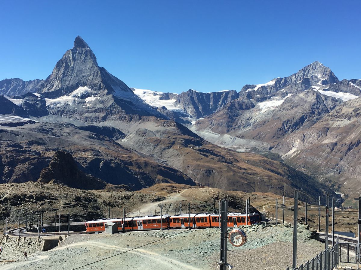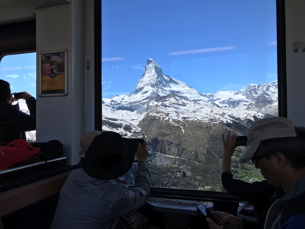 ミラノは小雨がふっていましたが、ツェルマットに着く頃には晴れ間が。残念ながらグルナグラード展望台からは雲でマッターホルンは見えませんでしたが、列車の途中、またツェルマットからはマッターホルンの頂がよく見え、最高でした。移動時間も苦にならず、大変良い思い出になりました。
