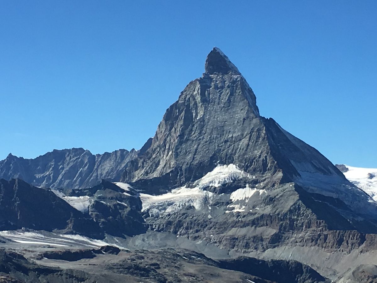 天気予報はツエルマットもゴルナグラートもあまりよくなく、期待しないで行ったのですが、ツエルマットに着くと左半分が薄い雲に隠れていましたがマッターホルンのほぼ全景が見え感動しました。ツエルマットからゴルナグラートへの登山電車も、氷河や湖・マッターホルンの迫力ある景色が見えてよかったです。