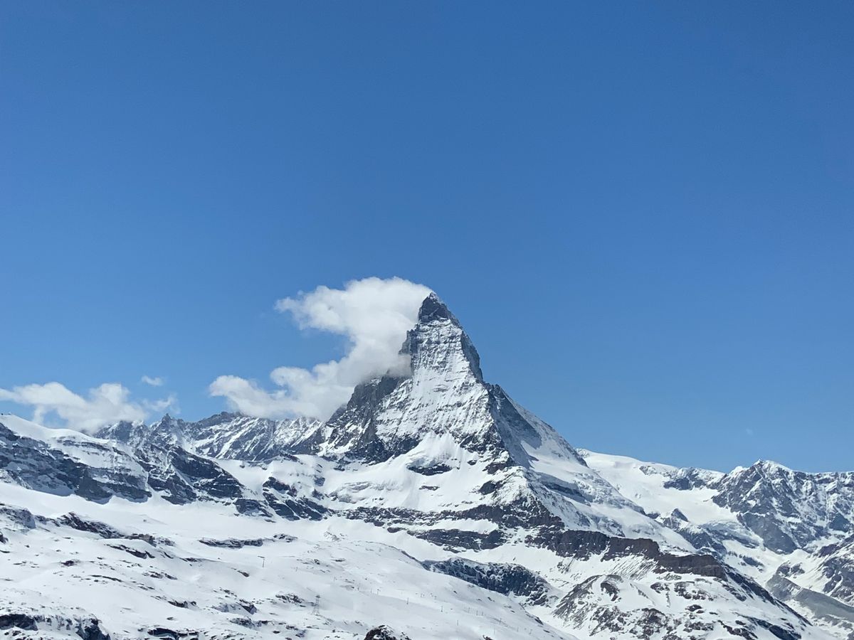 4月でまだ雪が残っていて寒かったですが晴れていてしっかりとマッターホルンを見ることができて感動しました。