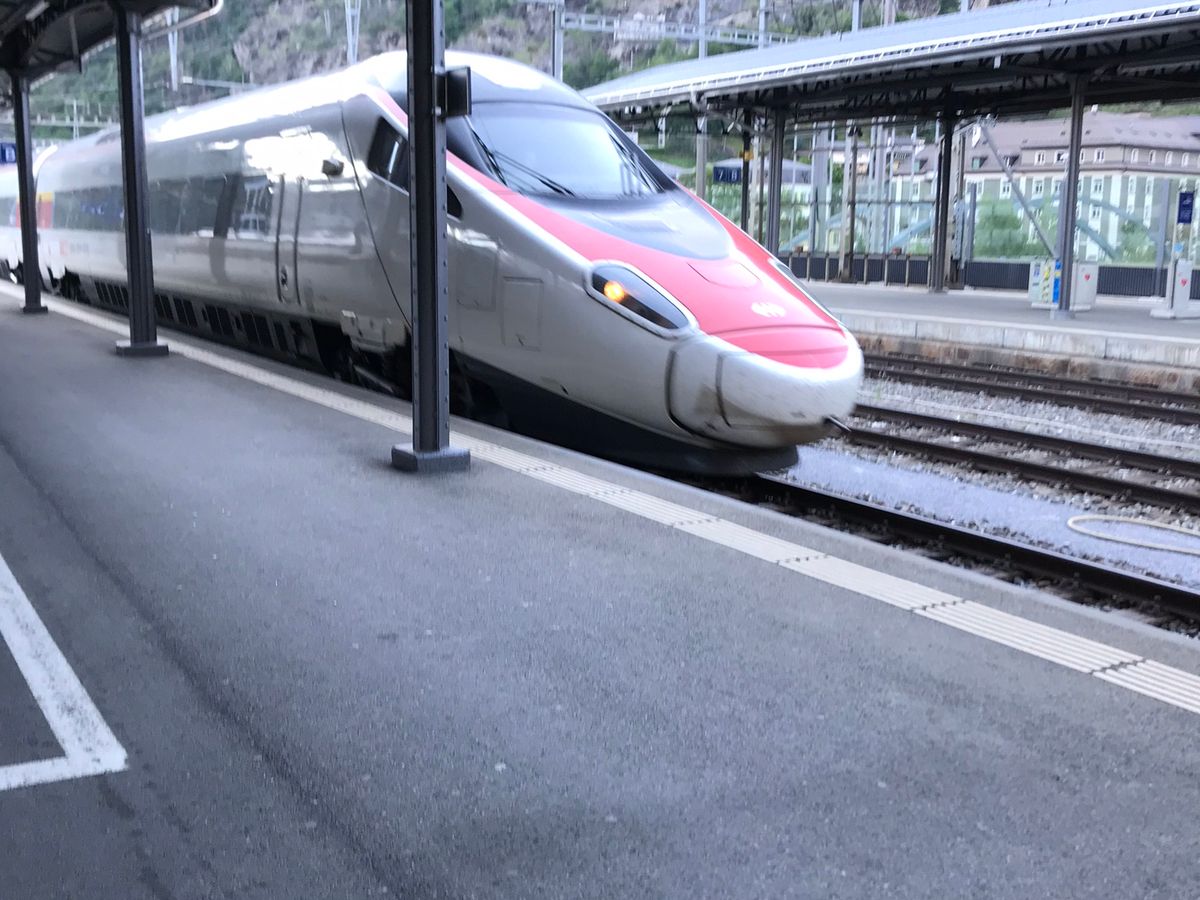 ミラノ中央駅の電光掲示板で、列車のプラットホームを確認できたらあとは乗るだけ!イタリアの街並みから、スイスの急峻な山々のへ風景が変わっていくのを楽しみました!