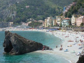 「綺麗な景色が見たい私」と「地中海で泳ぎたい父」の希望でこのツアーを選びました。当日は天気は良かったものの早朝の雷雨の影響で波が高く船での観光は中止で鉄道での移動となりちょっと残念でした。それでも訪問した村はそれぞれが美しく感激しました。モンテローザでの滞在は3時間あり、父は昼食(パスタがとっても美味しかった)もそこそこに泳ぎに行ってしまいました。「丘の緑・白い砂浜・青い海」のコントラストが美しく、波が少し高く私と母は砂浜での遊びとなりましたが気持ち良かったです。着替えは昼食をとったレストランのトイレを利用しました。