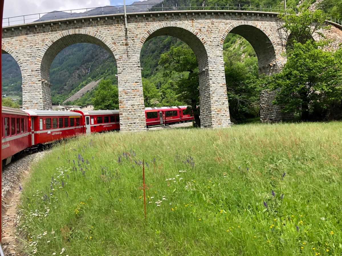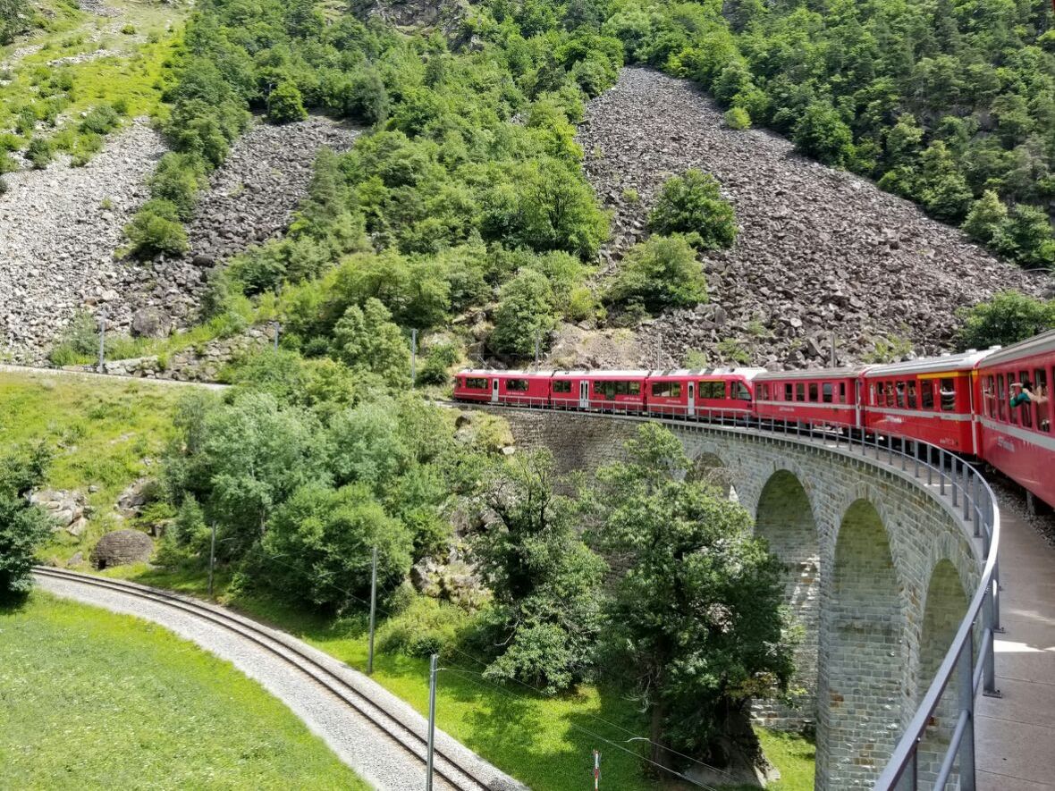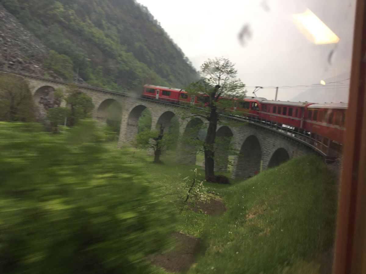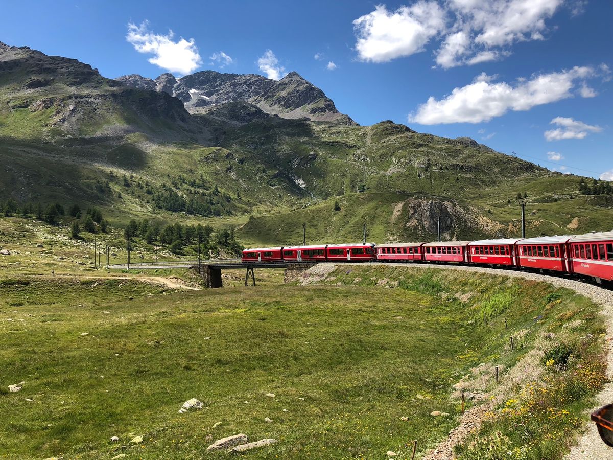 ベルニナ急行からの景色は言葉に出来ない素晴らしさでした。鉄道のどこに座っていても譲り合って写真を撮れました。天気も気持ちがよく、サンモリッツにはもう少し滞在していたかったです。