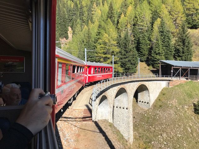ベルニナ急行もすいていて 車両に二組だけ。右左うごきながら沢山の写真を撮り 絶景を楽しみました。足を延ばしてみてよかったです。。