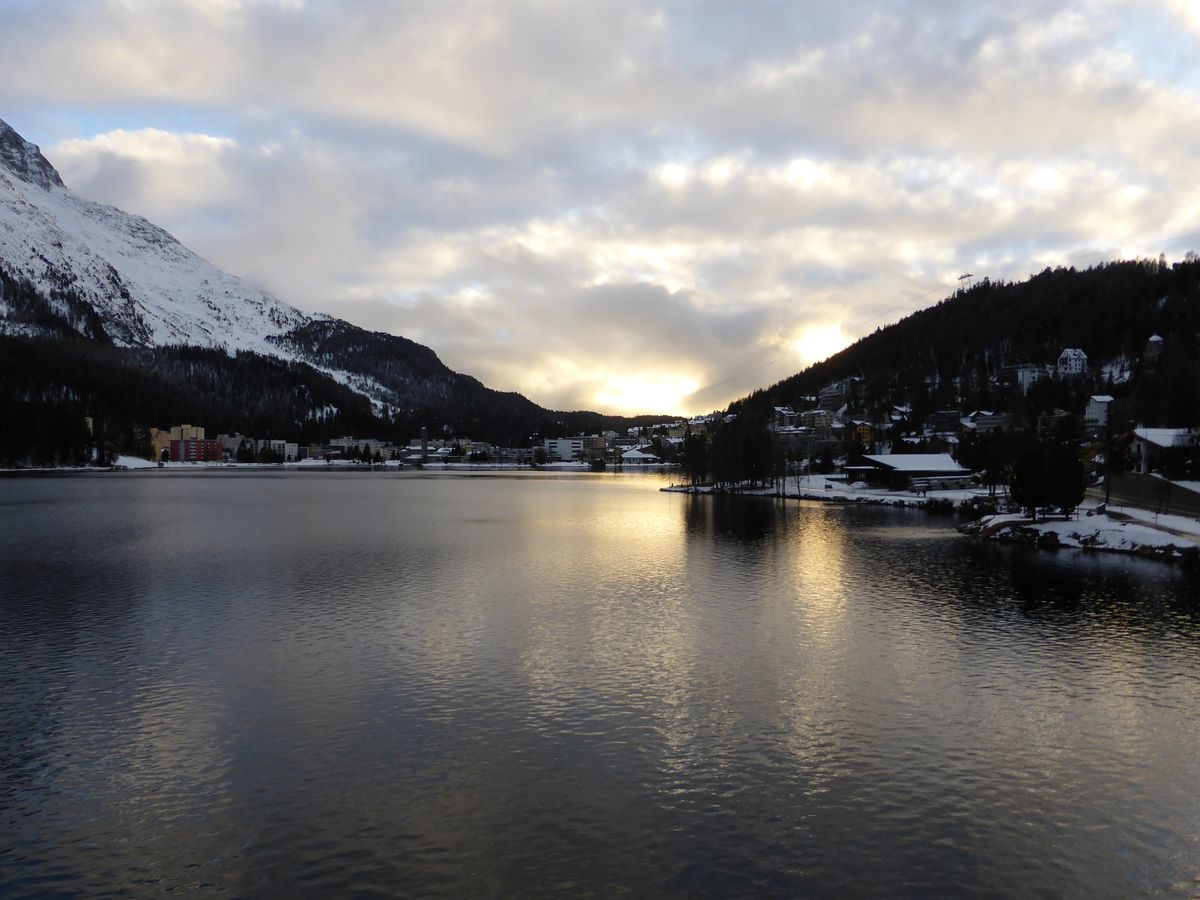 サンモリッツについたら自由時間で、お買い物、サンモリッツ湖撮影などできますが、せっかくなのでホットチョコレートドリンクを飲みました。(あまり時間がないのが残念でしたが・・・)カフェから出ると青空が出てきたので、美しいサンモリッツ湖のサンセット写真を撮ることができました!