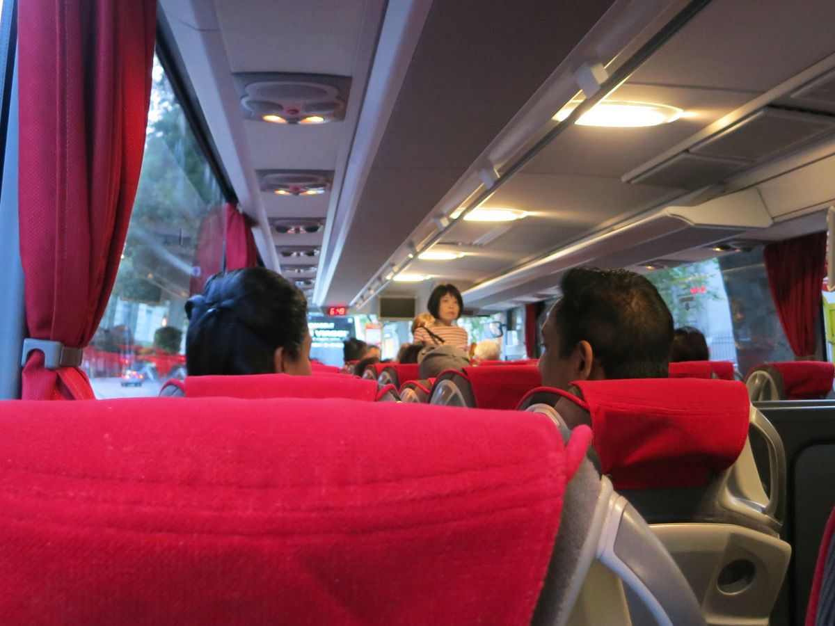 バスの席は自由なのでちょっと早めに集合して並んでおいたほうが良いと思います。