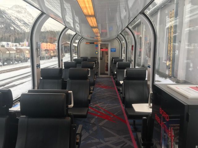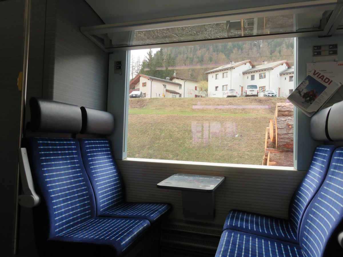 ベルニナ急行は1等車をオススメします。できれば進行方向のできるだけ後ろに座るとパノラマ景色が見えるでしょう。
