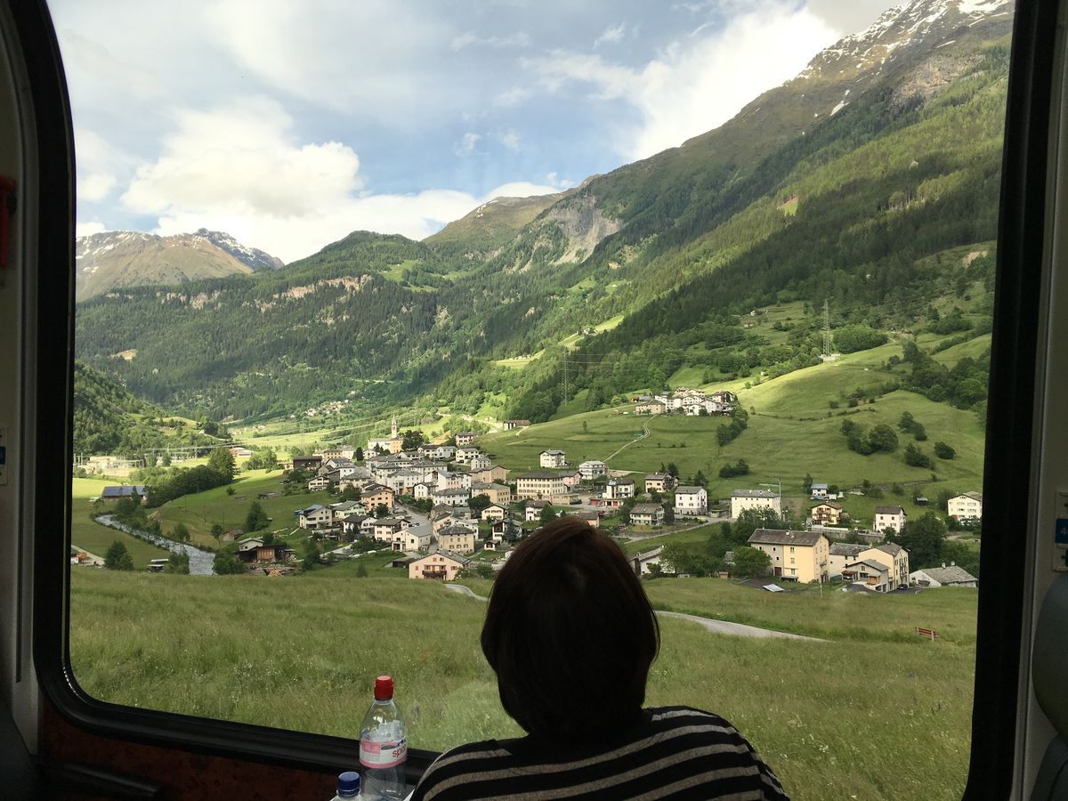 車窓がきれいなローカル鉄道・バスを乗り継いでサンモリッツに行きましたが、