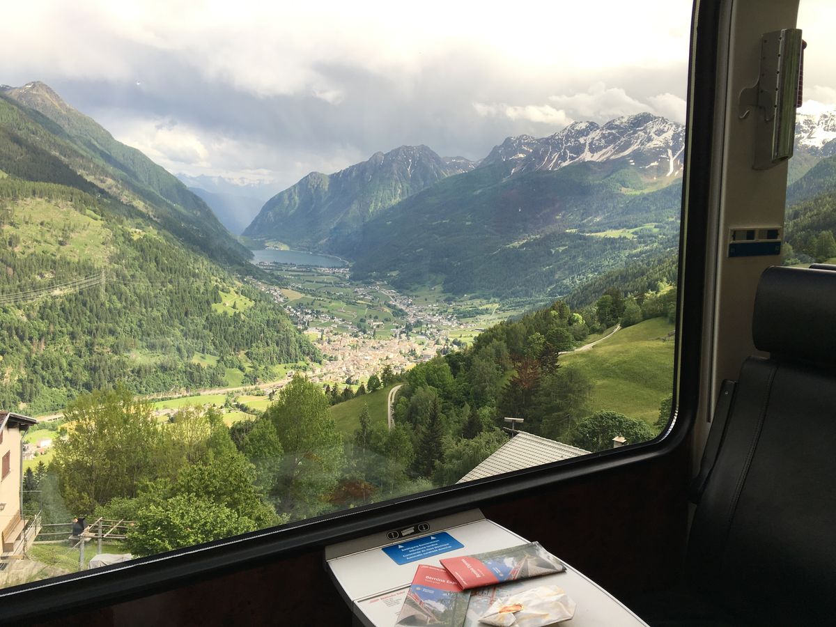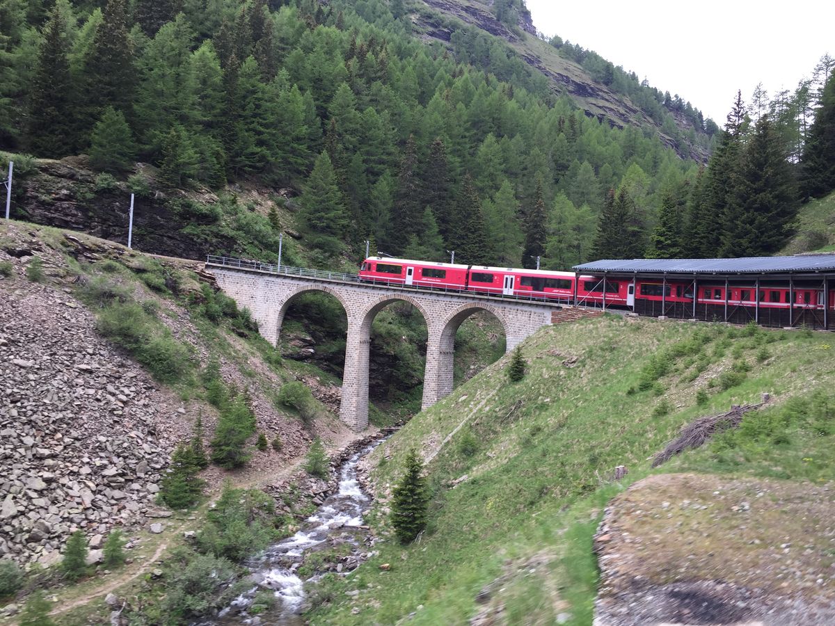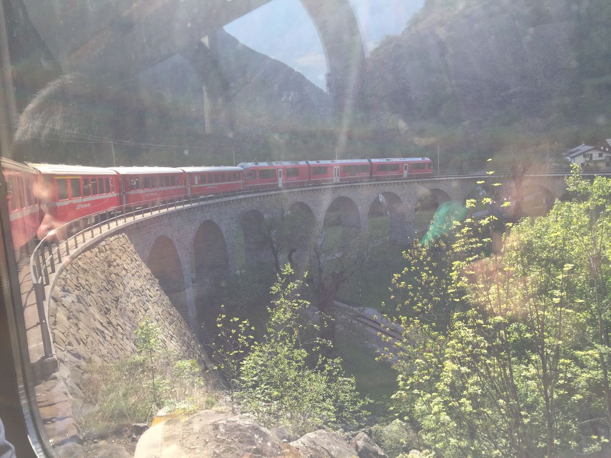 ベルニナ急行の指定席が左側の席で見所があるのは右側だったのですが、イタリア人の方が写真を撮らせてくれました。