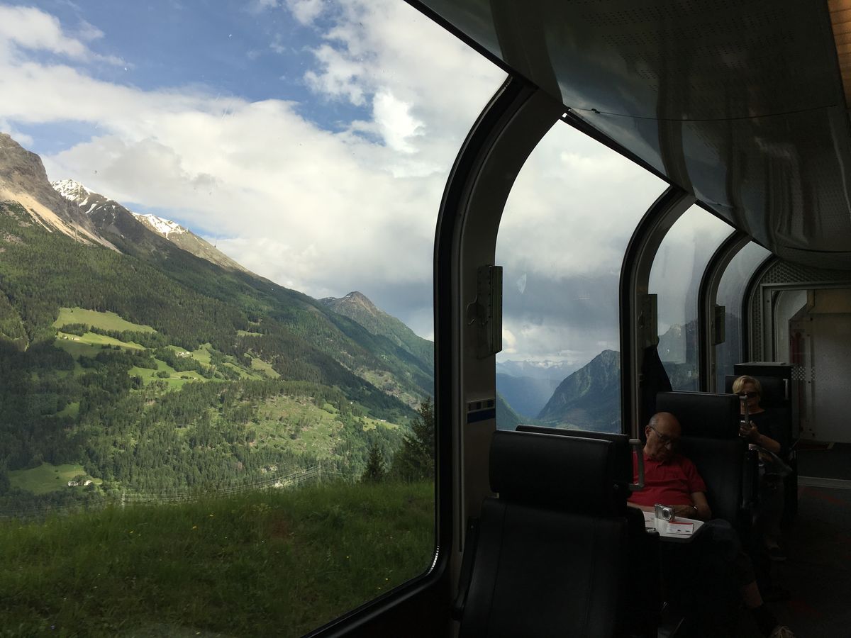 窓が大きくとても楽しいベルニナ急行の旅です。