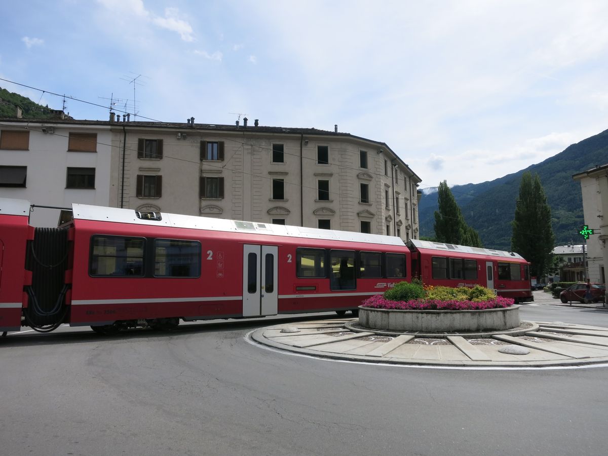 4.10:40ティラノ駅近くの教会に到着。ここで一旦下車して教会の周りと、内部を見学。 付近には公衆トイレは無し。街中をトラムのようにベルニナ急行列車が目の前を通過していました。