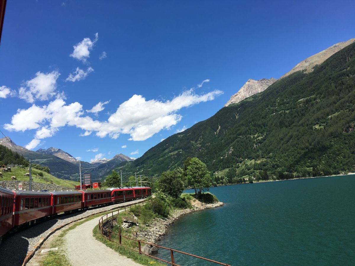 ティラーノで珍しいそば粉のパスタを食べた後ベルニナ特急に乗車。列車が駅を後にすると、とたんにスイスが目の前に広がった。赤い列車で谷間の村を眼下に見下ろして駆け抜けた後、息を呑むほど美しい湖のそばを通り過ぎる。永久氷河を目の当たりに見た後、可愛らしいサンモリッツの街へ到着。列車の中では、絶景が左右に分かれて広がるので、立ち上がって右へ行ったり左へ行ったりと忙しかったが、とても素晴らしい一日を過ごすことができた。
