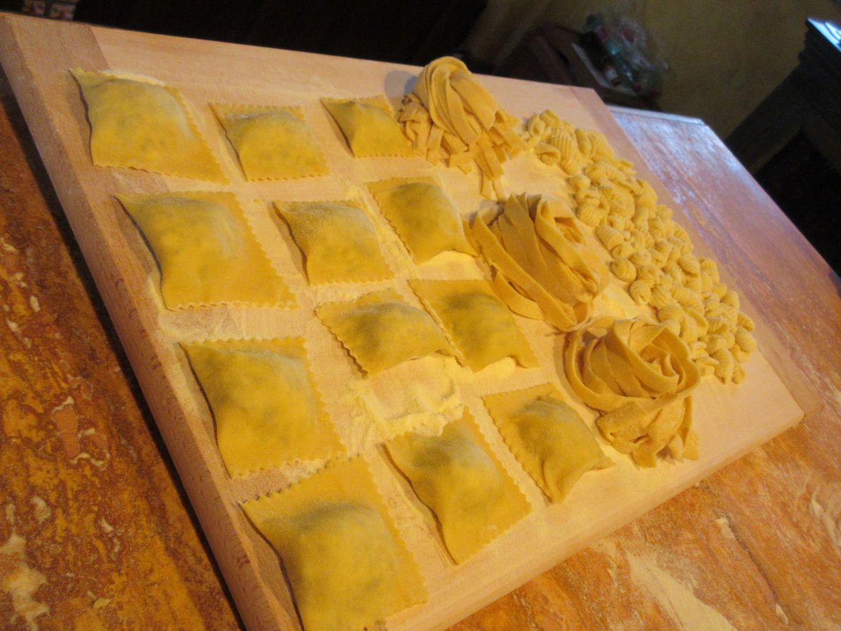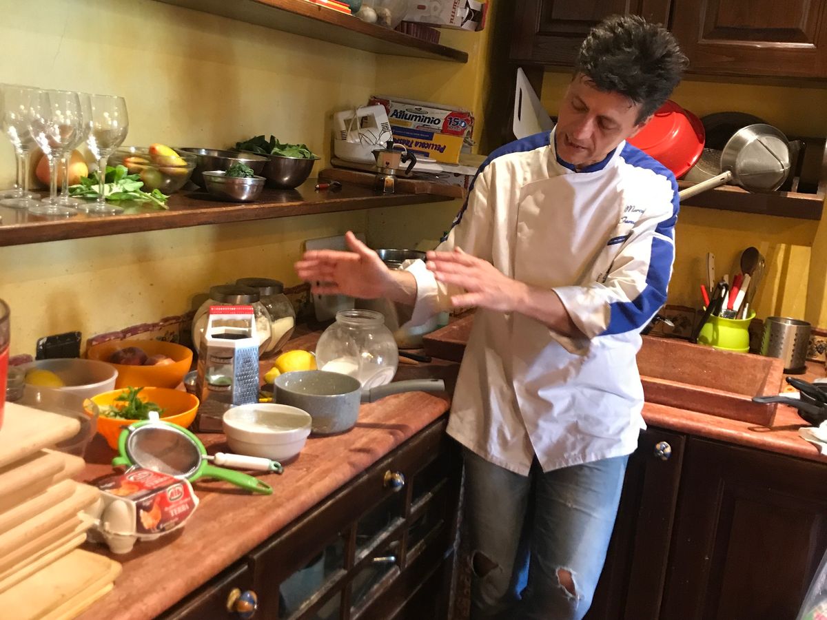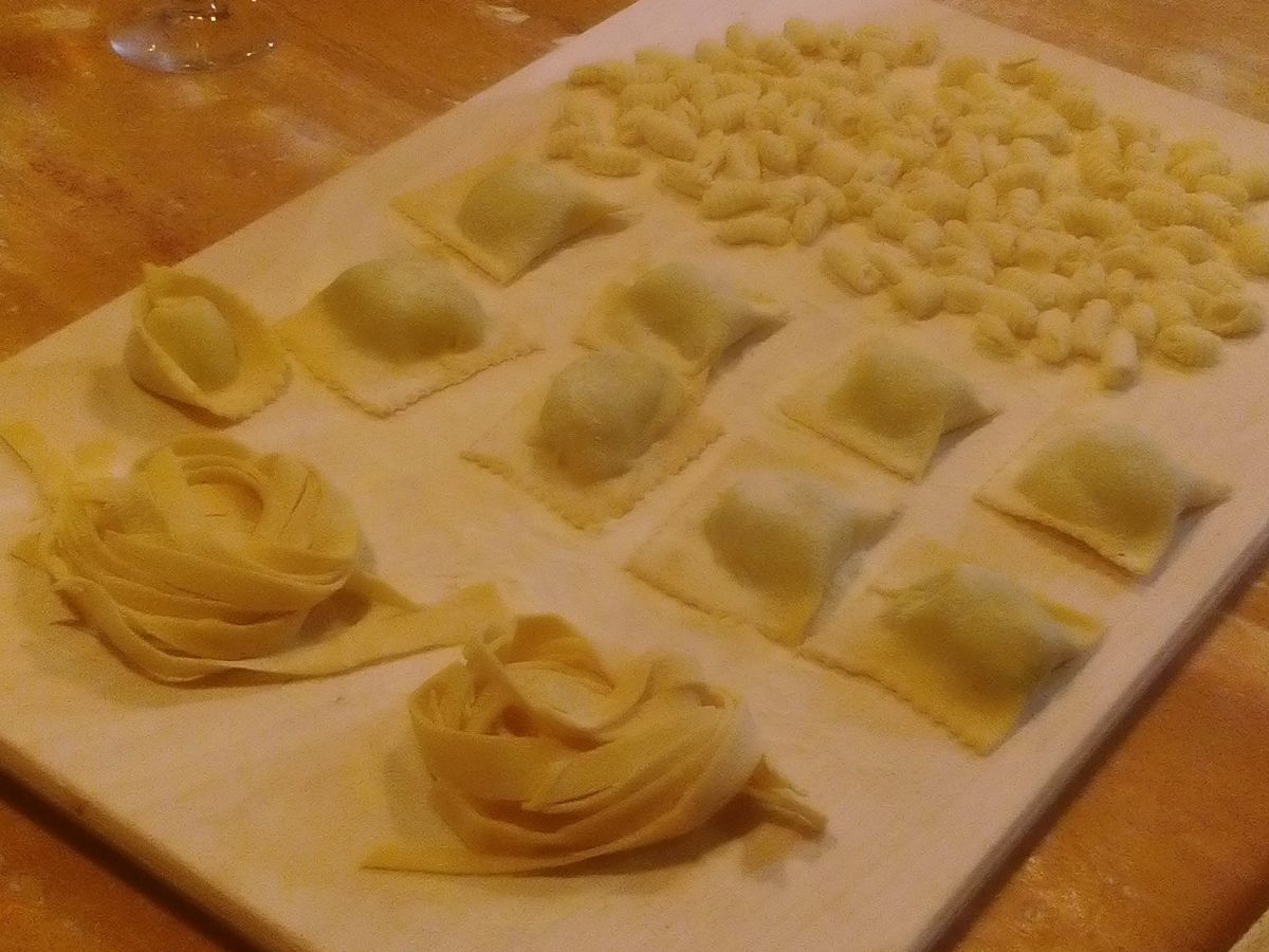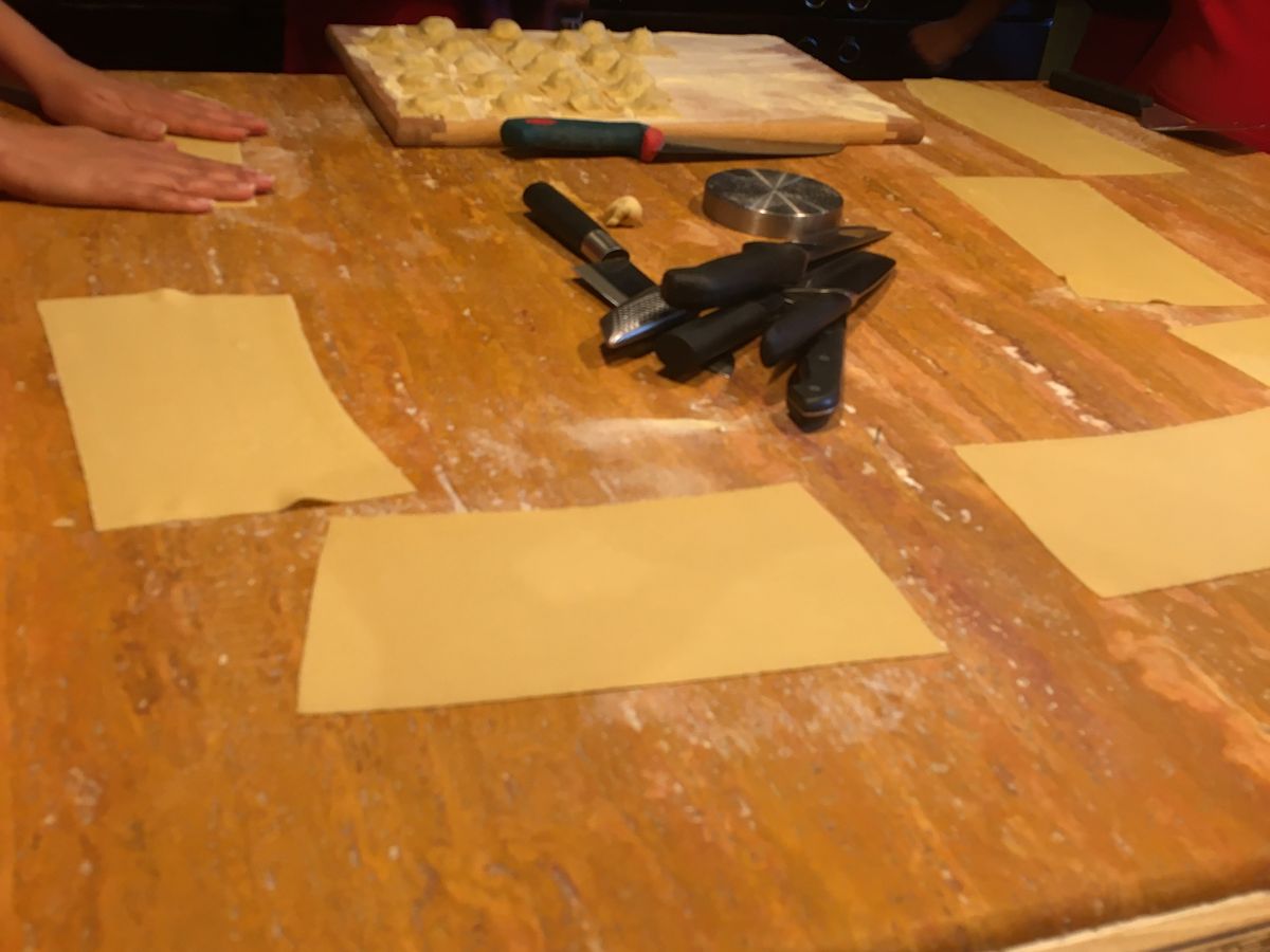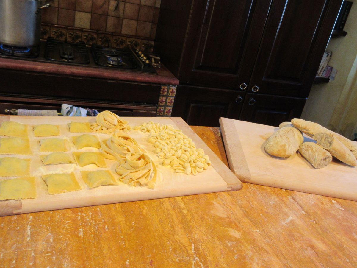 中世の雰囲気と自然があふれるマッツァーノ・ロマーノの民家で、アメリカ人の4人家族とカップルと一緒に、(飲める方はワインを飲みながら)リラックスした雰囲気の中、終始笑いの絶えないレッスンでした。それでも基本と重要なところはしっかり教えてくれ、作ったパスタ、メイン、デザートはとても美味しかったです。