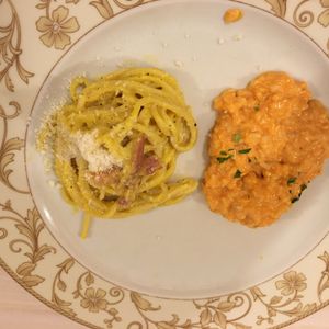 ヴァチカン王国近くでのランチも、ツアーだからそんなに期待はしていなかったのですが、前菜+サラダ+パスタ2種+デザートの予想以上に満足のいくものでした。