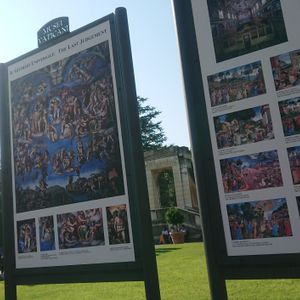 ヴァチカン美術館中庭でシスティーナ礼拝堂の壁画の説明をしていただけます。ここで詳しくお話しを聞かせていただけたので、壁画により愛着をもって鑑賞することができました。